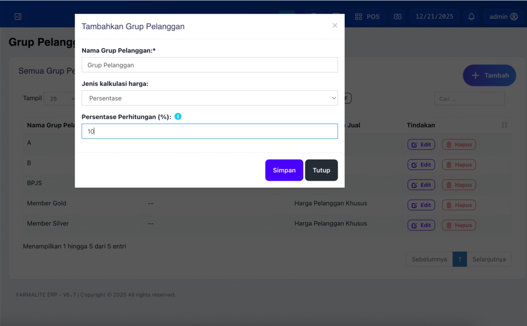 ✓ Akan muncul form Tambahkan Grup Pelanggan