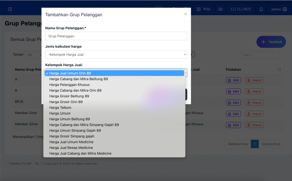 ✓ Pilih kelompok harga yang sudah dibuat di sistem