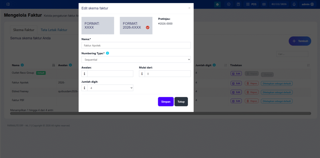 Di popup “Edit Skema Faktur” ada pilihan format: