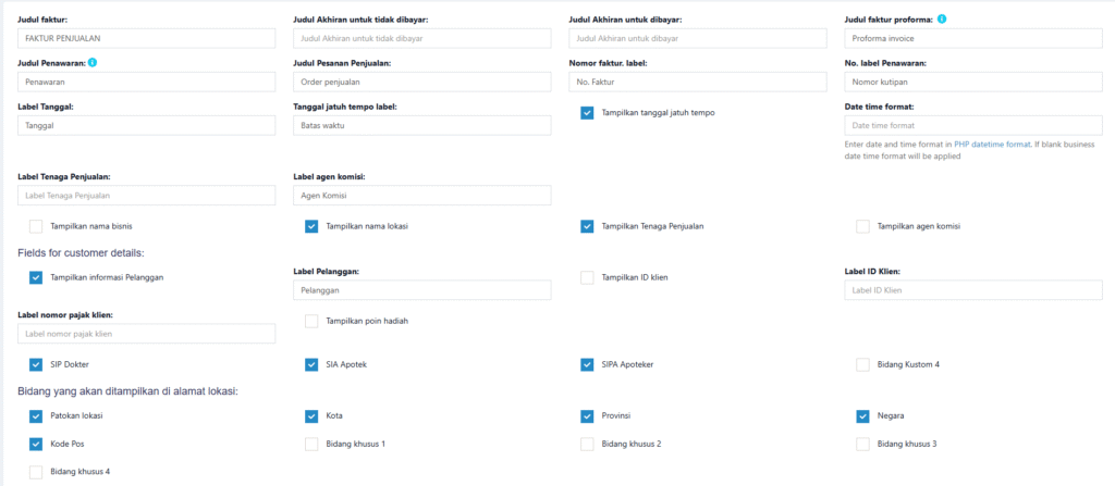 Semua ini muncul di header faktur.