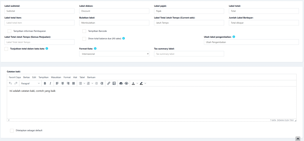 Bagian ini mengubah teks pada invoice.