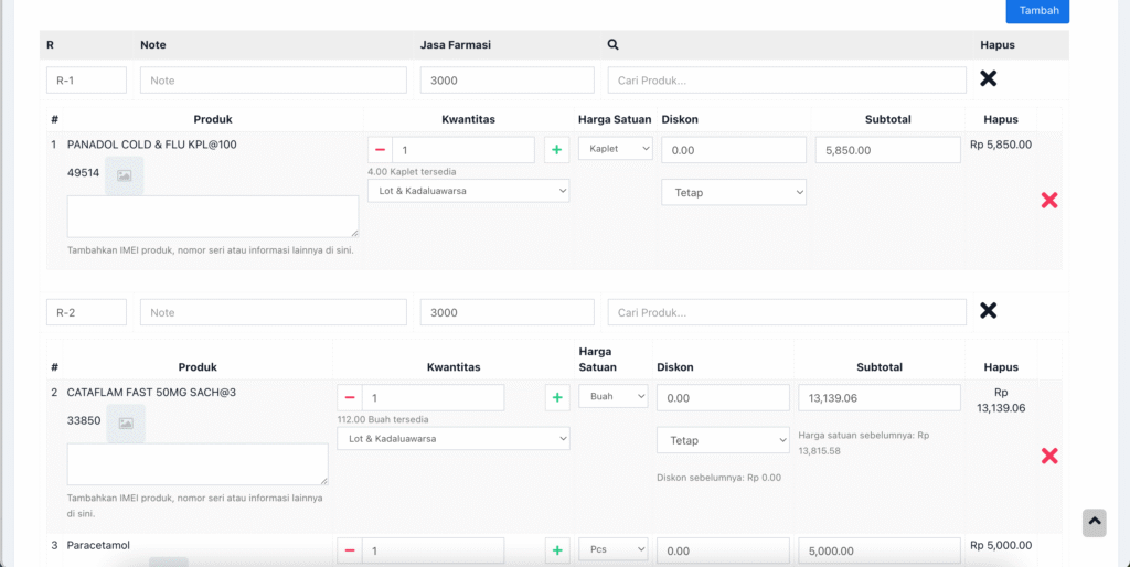 Menu ini khusus untuk transaksi obat resep.